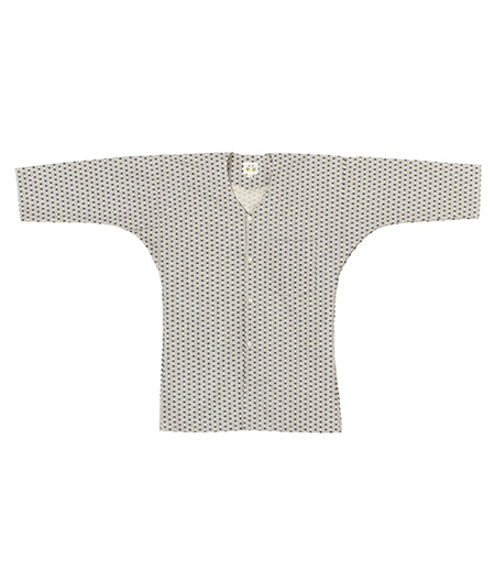 綿100%(シーチング)。捺染。 麻の葉を小紋調に配したデザインです。麻の葉は丈夫ですくすくとまっすぐに伸びることから、子供の産着に用いる風習があります。祭り衣装にも頻繁に用いられる定番の和柄です。