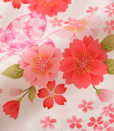 シーチング。捺染。 華やかな桜模様に、蝶が舞います。輝くラメがいっそう華やかさを増しています。